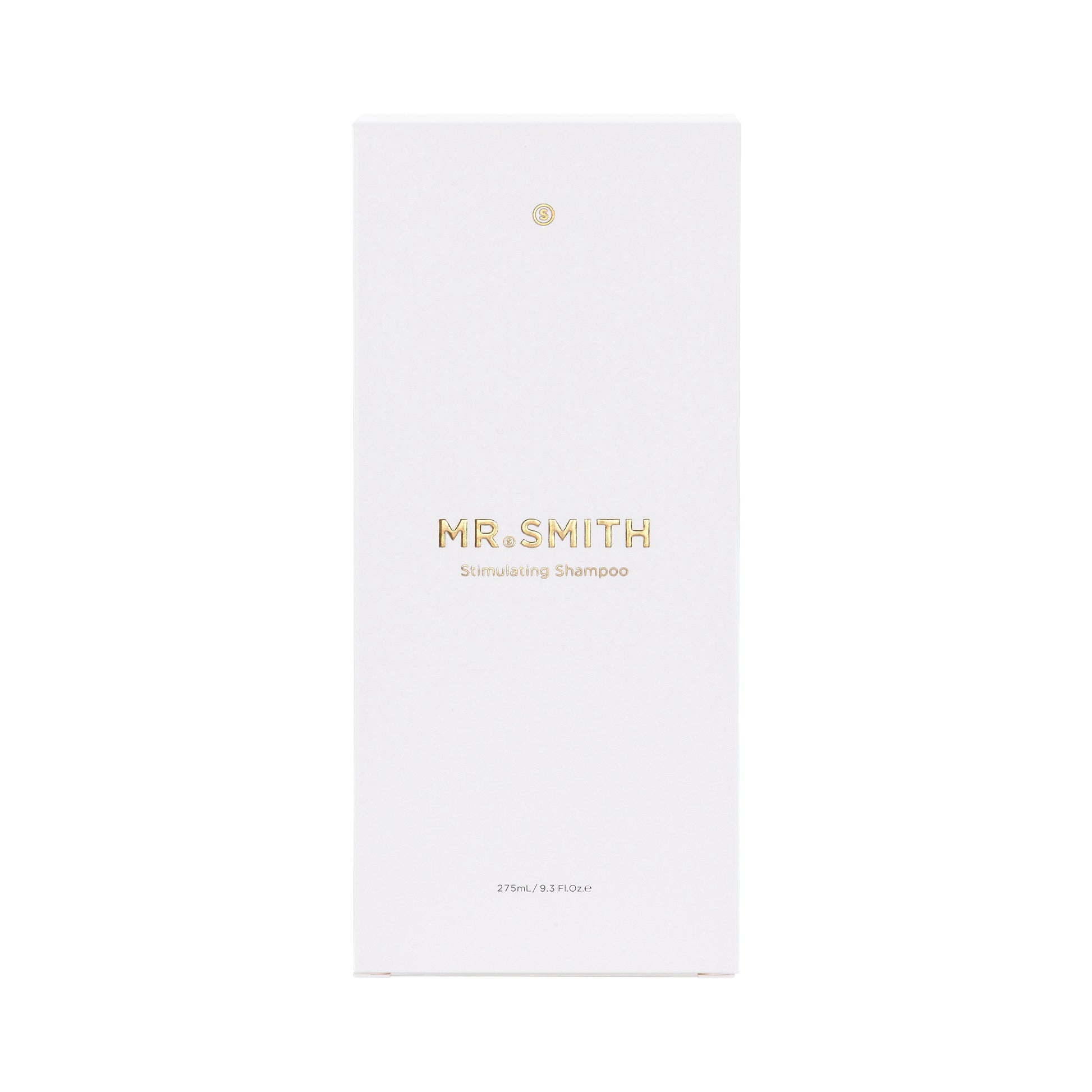 Odświeżający i rewitalizujący szampon Stimulating Shampoo Mr. Smith ożywia i pobudza mieszki włosowe oraz pomaga pobudzić wzrost włosów. Olejki z awokado i mięty pieprzowej odżywiają skórę głowy i poprawiają krążenie, a masło shea i ekstrakt z zielonej herbaty wzmacniają włosy i uzupełniają w składniki odżywcze. Produkt wegański, certyfikat PETA. Bez siarczanów, parabenów i silikonów.